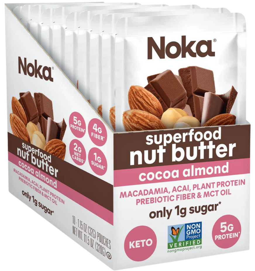Ingredients: coconut, almonds, erythritol, cocoa powde processed with alkali, macadamia nuts, sunflower seeds, pea protein, soluble tapioca fiber, palm oil coconut, mct oil, salt, acai juice powder, natural flavors, cinnamon, stevia extract. CONTAINS COCONUT, ALMOND, MACADAMIA.