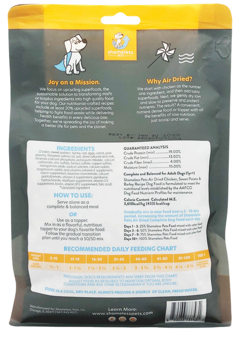 Give your furry friend a delicious and nutritious treat with Shameless Pets Sweet Hensations Air Dried Dog Food & Topper. Made with high-quality ingredients, this air-dried food features a savory blend of chicken and sweet potatoes, providing a wholesome meal or a tasty topper for their regular food. Perfect for enhancing your dog's diet, it offers all the benefits of raw nutrition, with on-the-go convenience of just scoop & serve.