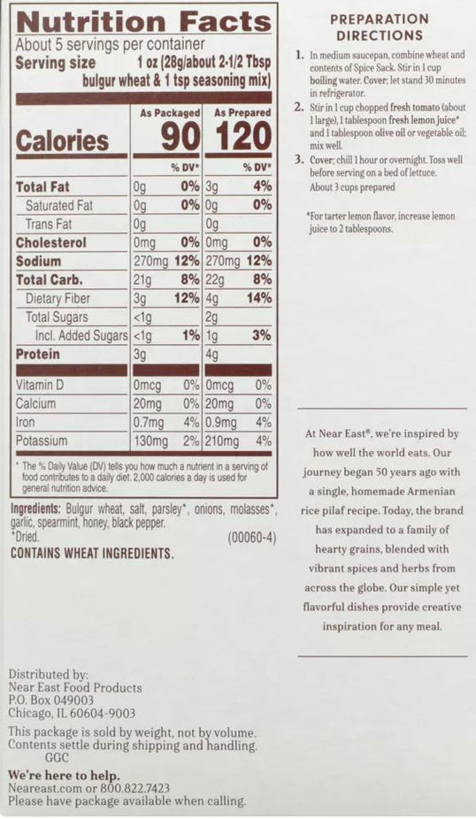 Experience the fresh and zesty taste of Near East's Taboule Mix Wheat Salad, a perfect addition to your healthy meal repertoire.