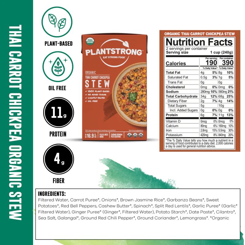 Ingredients: Water, Organic Carrot Puree, Organic Onions, Organic Brown Jasmine Rice, Organic Garbanzo Beans, Organic Sweet Potatoes, Organic Red Bell Peppers, Organic Cashew Butter, Organic Spinach, Organic Split Red Lentils, Organic Garlic Puree (Organic Garlic, Water), Organic Ginger Puree (Organic Ginger, Water), Organic Potato Starch, Organic Date Paste, Organic Cilantro leaves, Sea Salt, Galangal, Organic Ground Red Chili pepper, Organic Ground Coriander, Lemongrass, Kaffir Limes Leaves.