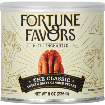 Introducing Fortune Favors The Classic Candied Pecans, the perfect blend of sweet and salty, highlighting the rich, buttery flavor of premium pecans.