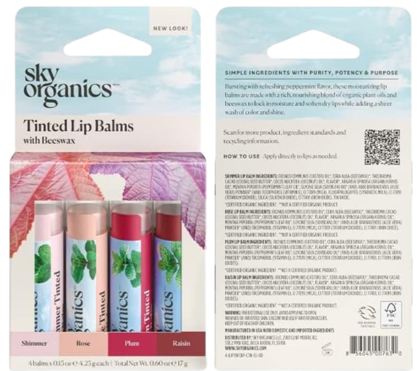 Ingredients: Organic Botanical Oils & Butters, Organic Beeswax, Mineral Colors, Vitamin E, Organic Peppermint Oil.