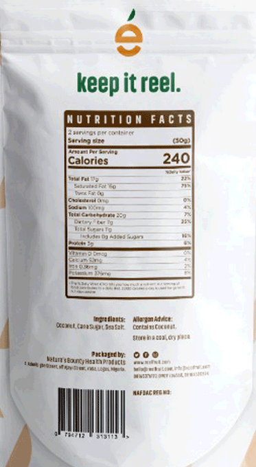 Ingredients: Coconut, Cane Sugar, Sea Salt