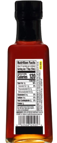Ingredients: Expeller Pressed Unrefined Toasted Sesame Oil.