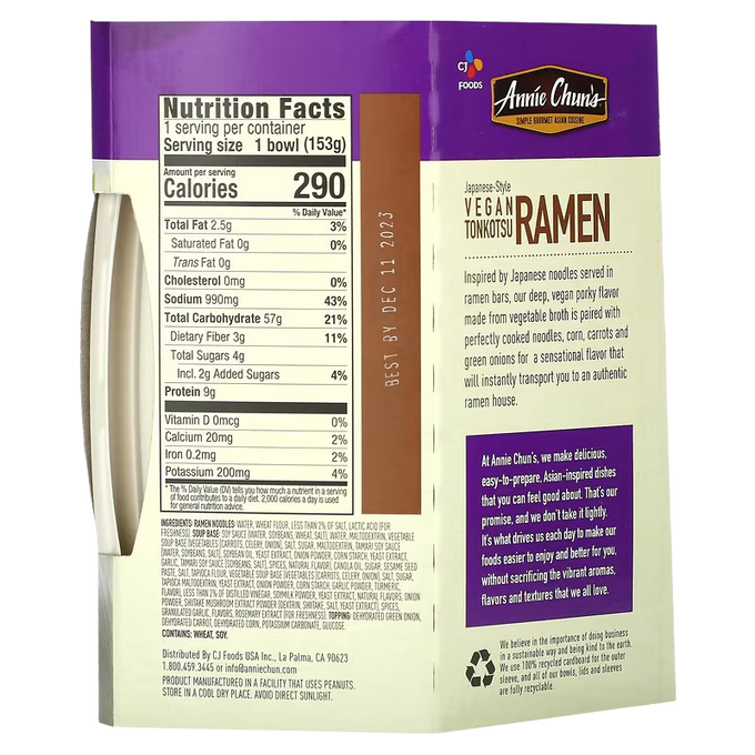 Annie Chun's Tonkatsu Ramen offers a rich, vegan-friendly twist on the traditional Japanese ramen experience, perfect for a quick and satisfying meal.