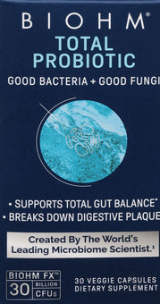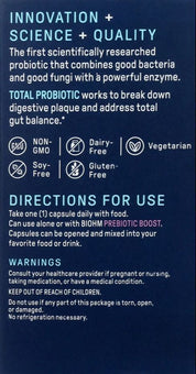 The first probiotic designed to combine good bacteria and good fungi with a powerful enzyme to help break down digestive plaque and support total gut balance.