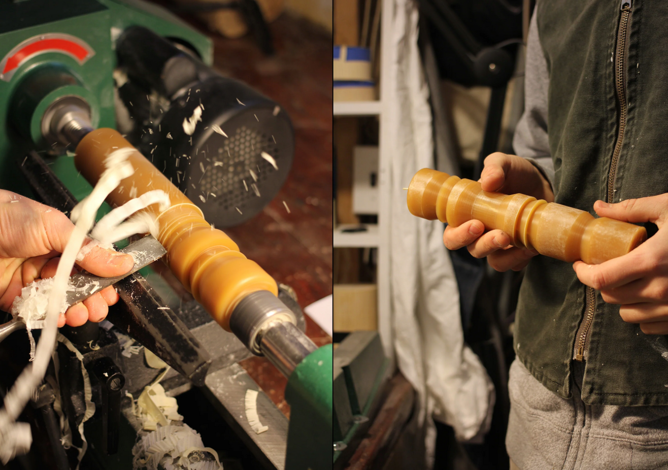 - Sleek, sculptural design – inspired by hand-turned beeswax forms