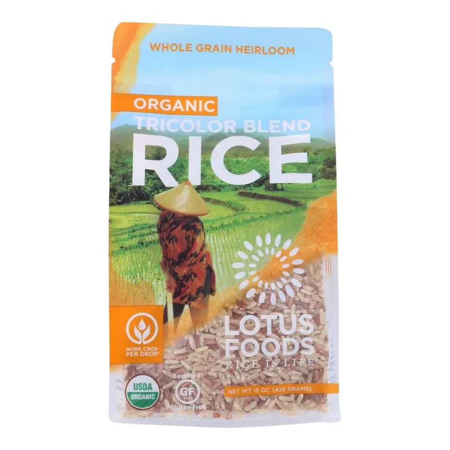 Enhance your meals with the colorful and flavorful Lotus Foods Organic Tricolor Blend Rice, a perfect choice for health-conscious cooks.