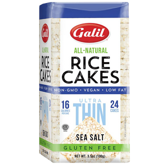 Galil Sea Ultra Thin Rice Cakes are a light and crispy snack crafted from all-natural ingredients, perfect for topping or enjoying straight from the pack.