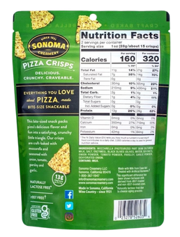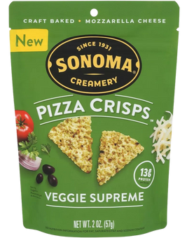 Sonoma Creamery is dedicated to creating authentic, cheese-based snacks crafted with real ingredients and expert care. Veggie Supreme Pizza Crisps bring the irresistible taste of pizza into a crunchy, airy snack that’s perfect for any time of day.