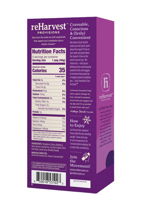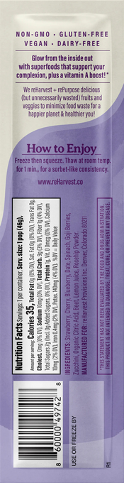 Ingredients: Strawberry, Cherry, Blueberry, Date, Spinach, Goji Berries, Zucchini, Organic Citric Acid, Beet, Lemon Juice, Rosehip Powder.
