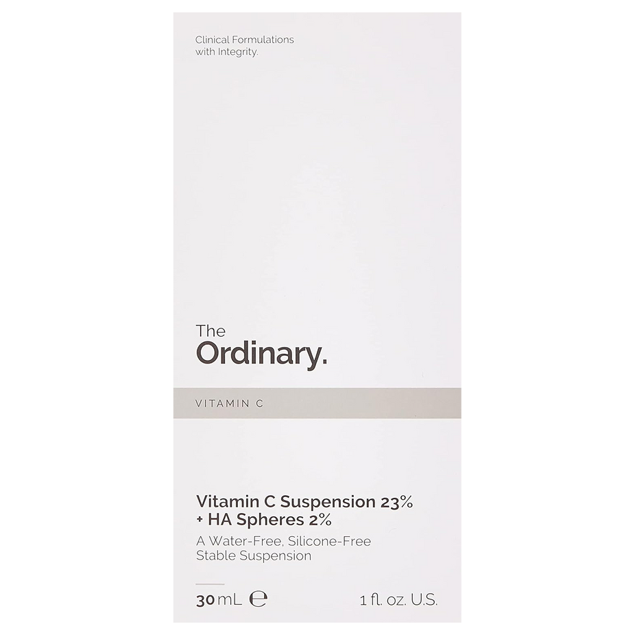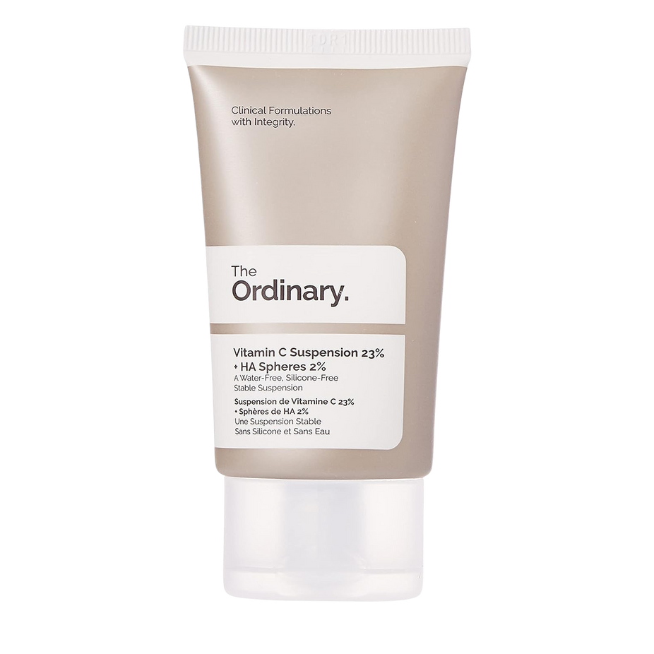 The Ordinary Vitamin C Suspension 23% + HA Spheres 2% is a potent nighttime serum designed to brighten skin tone and reduce visible signs of aging.