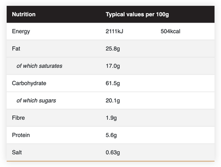 Ingredients: Wheat Flour (Wheat Flour, Calcium Carbonate, Iron, Niacin, Thiamin), Butter (Milk) (29%), Sugar, Treacle, Golden Syrup (Partially Inverted Refiners Syrup), Ground Ginger, Raising Agent: Sodium Bicarbonate. Contains: Milk, Wheat, Gluten. May Contain Tree Nuts.