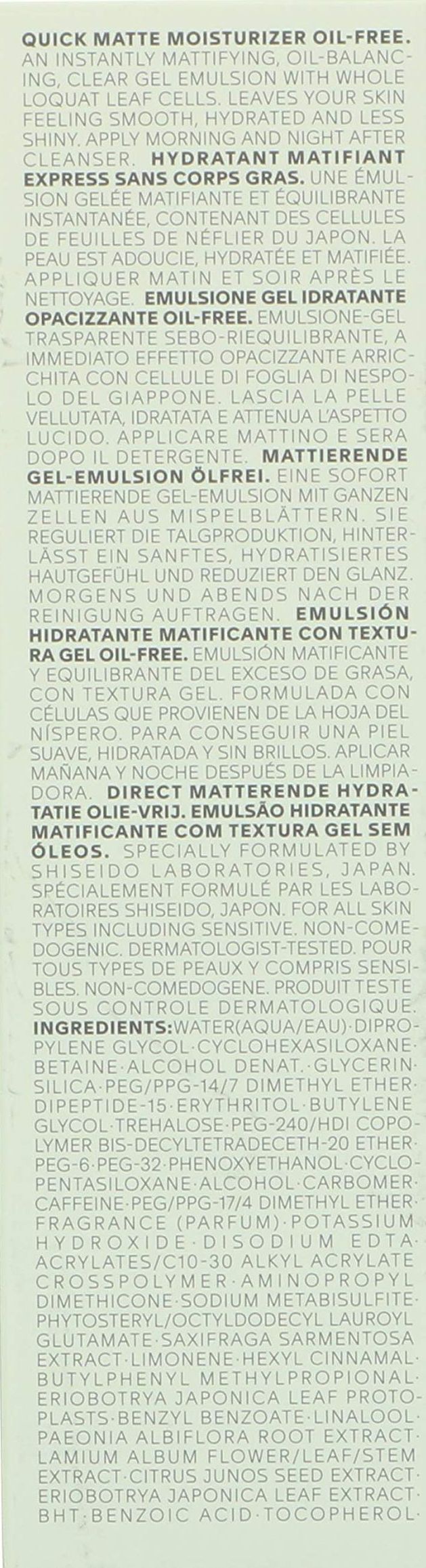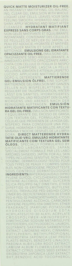 Achieve a shine-free, balanced complexion with Shiseido Waso Quick Matte Moisturizer Oil-Free. This lightweight, oil-free moisturizer is specifically designed for combination to oily skin, delivering long-lasting hydration while controlling excess oil. Infused with botanical ingredients like loquat leaf extract, it helps reduce the appearance of pores and prevent blemishes. The quick-absorbing formula leaves your skin feeling fresh, smooth, and matte all day. Perfect for daily use, Shiseido Waso Quick Matte Moisturizer Oil-Free is your go-to solution for a clear, healthy-looking complexion.