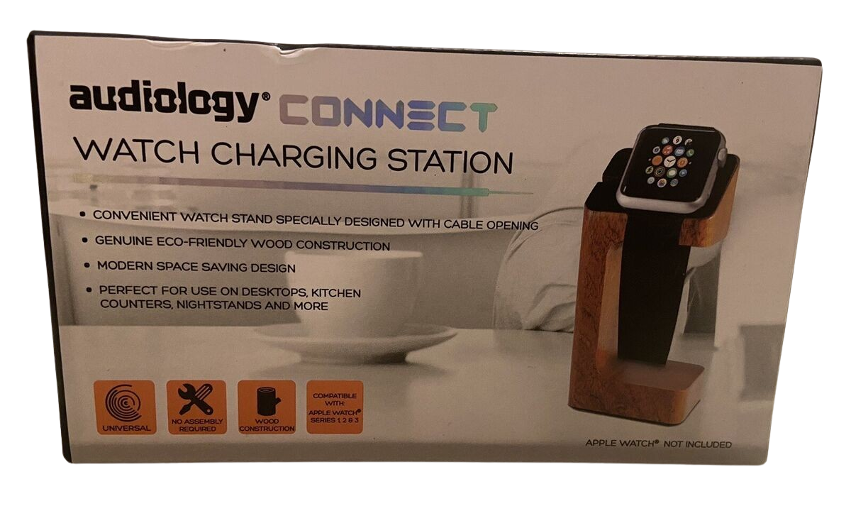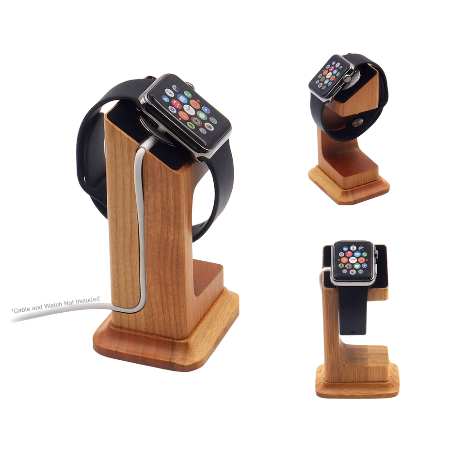The Audiology Watch Charging Station is a bamboo-crafted charging dock designed to keep your Apple Watch powered and organized.