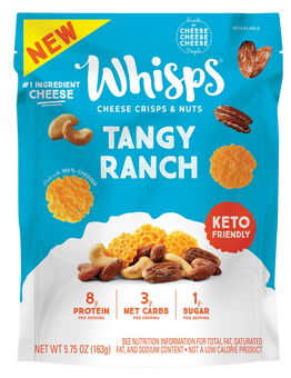 Ingredients: Cheddar Cheese Crisps (Pasturized Milk, Cheese Cultures, Salt, Enzymes, Annatto (Color)), Almonds, Cashews, Pecans, Maltodextrin, Buttermilk, Dextrose, Garlic*, Yeast Extract, Onion*, Tomato*, Salt, Citric Acid, Sugar, Spice, Lactic Acid, Paprika, Malic Acid, Natural Flavors, Vinegar, Canola Oil *Powder.