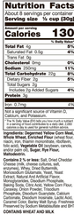 Ingredients: Degermed Yellow corn Meal, Whole Wheat, Enriched Flour (wheat flour, niacin, iron, thiamin mononitrate, riboflavin, folic acid), Vegetable Oil (soybean oil, palm oil, and/or canola oil), Sugar, Rye Flour, Maltodextrin. Contains 2% or less: Salt, Dried Cheddar Cheese (Milk, Cheese Cultures, Salt, Enzymes), Whey, Dried Buttermilk, Monosodium, Glutamate, Yeast, Yeast Extract, Natural and Artificial Flavor, Monoglycerides, Disodium Phosphate, Baking Soda, Citric Acid, Yellow Corn Flour, Caraway, Onion Powder, Trisodium, Phosphate, Disodium Guanylate, Calcium Carbonate, Disodium Inosinate, Lactic Acid, Caramel Color, Barley Malt Syrup. Freshness Preserved by Sodium Metabisulfate and BHT.