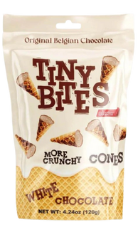 Tiny Bites White Chocolate Mini Waffle Cones are a sweet and satisfying snack infused with the rich taste of Belgian white chocolate.