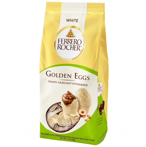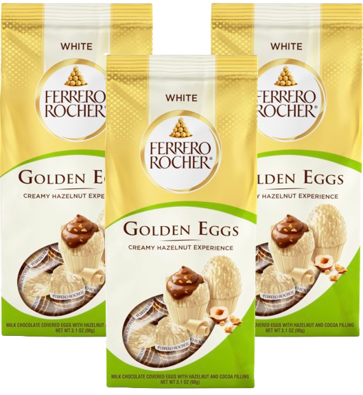 An indulgent, creamy hazelnut filling with hazelnut and crispy wafer pieces, surrounded by a fine white chocolate shell .A unique Ferrero Rocher taste experience. 10 individually wrapped Ferrero Crispy White Chocolate Eggs. An indulgent, creamy hazelnut filling with hazelnut and crispy wafer pieces, surrounded by a fine white chocolate shell. Creamy Hazelnut Filling, Crisp Wafer & Fine White Chocolate 10 Individually wrapped Mini Eggs. The perfect Easter basket stuffer for Easter hunts, crafts, candy bowls, decorating, and more! Comes in a pack of 3.
