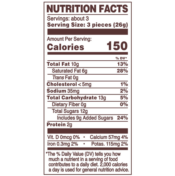 Ingredients: White Chocolate (Cocoa Butter, Sugar, Skim Milk Powder, Anhydrous Milk Fat, Soy And/or Sunflower Lecithin, Vanillin), Sugar, Modified Palm Oil, Whey Powder, Hazelnuts, Cocoa Powder,wheat Flour, Soy And/or Sunflower Lecithin, Flavorings, Malted Wheat Flour, Sodium Bicarbonate, Salt. Contains Milk, Hazlenuts, Wheat, Soy. May Contain Eggs, Almonds.