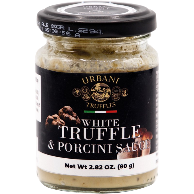 Ingredients: Porcini mushrooms (Boletus edulis ) 46% , heavy cream, water, extra virgin olive oil, maize starch (thickener), butter, bianchetto truffles (Tuber albidum pico ) 3%, grana padano cheese, salt, milk proteins, aroma, parsley, garlic, citric acid E330 (acidity corrector), white pepper.