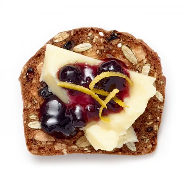 Ingredients: Unbleached Enriched Flour (Unbleached Wheat Flour, Niacin, Iron, Thiamine Mononitrate, Riboflavin, Folic Acid), Pumpkin Seeds, Wild Blueberries, Almonds, Brown Sugar, Flax Seeds, Sesame Seeds, Organic Skim Milk, Sugar, Chia Seeds, Sea Salt, Leavening (Baking Soda), Lemon Peel, Thyme, Citric Acid, Lemon Oil.