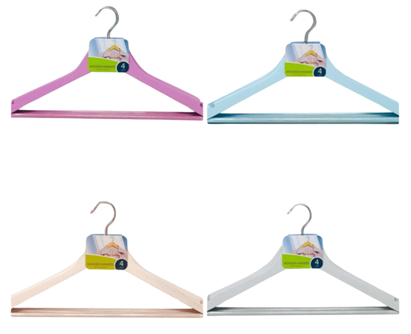 The Homegoods Wooden Hangers (Set of 4 one color only) - Homegoods brings both durability and a touch of color to your wardrobe organization.