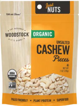 Woodstock cashew raw fancy pieces in a 7 oz. Bag are a nutritious snack packed with 5 g. Of protein in each serving. Eat them right out of the bag or make a delicious nut butter with them. This bag is full of nothing but usda organic certified cashews produced in brazil.