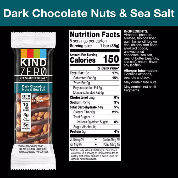 Ingredients: Almonds, Peanuts, Tapioca Fiber, Allulose, Palm Kernel Oil, Brown Rice, Chicory Root Fiber, Cocoa Powder (Processed With Alkali), Unsweetened Chocolate, Sea Salt, Peanut Butter (Peanuts, Sea Salt), Natural Flavor, Soy Lecithin.